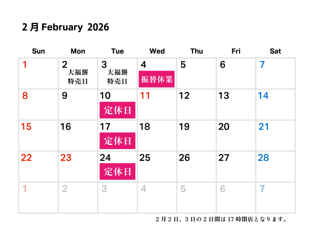 2月の営業カレンダー